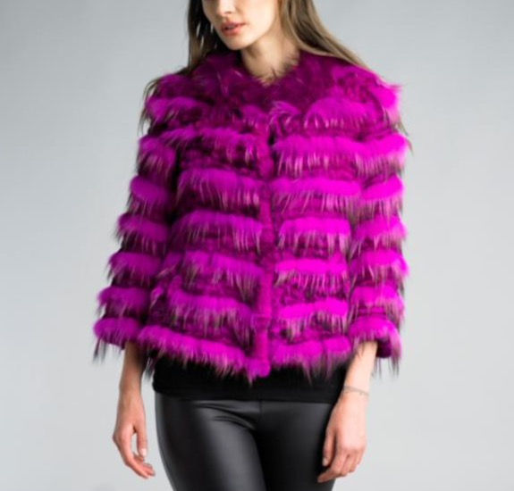 Lightweight Reversible Fox Fur Applique on Silk Bomber Jacket